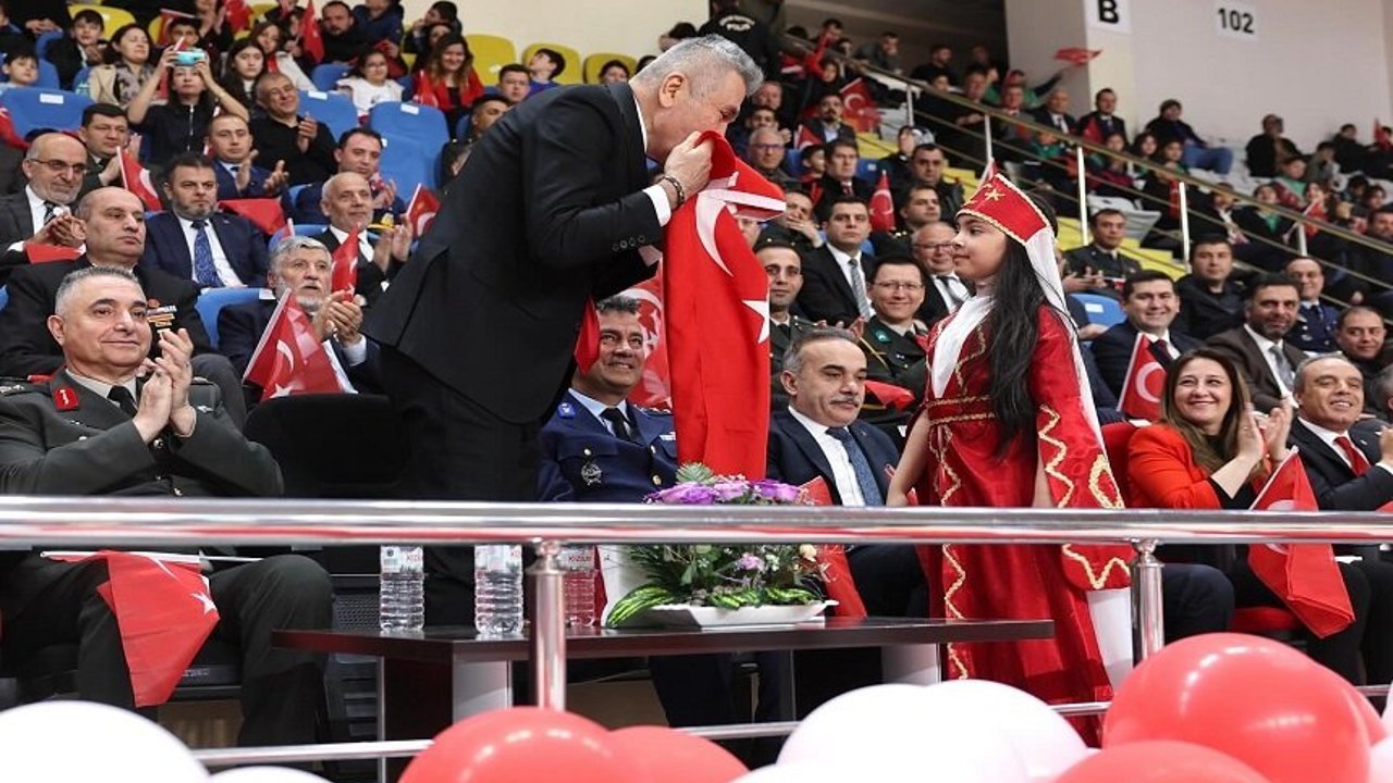Programda konuşan İl Milli Eğitim Müdürü Miraç Sünnetci, 23 Nisan’ın anlam ve önemine vurgu yaparak şu ifadeleri kullandı: “Konuşmama başlamadan önce geçtiğimiz hafta eğitim ortamlarında yaşanan ve milletimizi derinden yaralayan menfur olaylardan duyduğum derin üzüntümü ifade ediyorum. Saldırılarda hayatını kaybeden öğretmenimize ve öğrencilerimize Allah'tan rahmet, yaralılarımıza acil şifalar diliyorum. Maarif ailemizin ve tüm milletimizin başı sağ olsun. Bugün Türkiye Büyük Millet Meclisi’nin açılışının 106. Yıl dönümünde, Gazi Mustafa Kemal Atatürk’ün çocuklara armağan ettiği 23 Nisan Ulusal Egemenlik ve Çocuk Bayramını büyük bir gurur, coşku ve heyecanla kutlamak üzere bir aradayız. 23 Nisan bağımsızlığın, özgürlüğün ve milli egemenliğin, milletimizin sarsılmaz iradesiyle taçlandığı, tarihimizin en anlamlı dönüm noktalarından biridir. Bu kutlu gün aynı zamanda yarınlarımızın teminatı olan siz sevgili çocuklarımıza duyulan güvenin ve inancın en güçlü ifadesidir. Sevgili çocuklarımız; sizler Türkiye Yüzyılının mimarları, güçlü Türkiye’nin yarınlarısınız. Gözlerinizdeki umut, kalplerinizdeki vatan sevgisi ve öğrenme azminiz ülkemizi daha aydınlık yarınlara taşıyacak en kıymetli hazinedir. Sizler hayal ettikçe, çalıştıkça ve ürettikçe Türkiye daha da güçlenecek, daha da yükselecektir. Bizler eğitim camiası olarak, sizlerin milli ve manevi değerlerine bağlı, özgüven sahibi, araştıran, sorgulayan bireyler olarak yetişmeniz için var gücümüzle çalışıyor ve çalışmaya devam edeceğiz. Türkiye Yüzyılıyla attığımız her adım sizleri geleceğe daha güçlü, daha donanımlı ve daha bilinçli bireyler olarak hazırlamak içindir. Unutmayınız ki sizler sadece bugünün değil, yarının liderleri, bilim insanları, öğretmenleri, sanatçıları ve yöneticilerisiniz. Ülkemizin yarınları sizin azminizle, gayretinizle ve inancınızla şekillenecektir. Bakanlığımızın Türkiye Yüzyılı maarif modeli vizyonunda yer alan hedeflere ulaşmamızda bizleri yalnız bırakmayan eğitimin her alanında maddi ve manevi destekleriyle yanımızda bulunan Valimiz Sayın Dr. Naci Aktaş başta olmak üzere tüm paydaşlarımıza ve basın mensuplarımıza şükranlarımı sunuyorum. Bu anlamlı gün vesilesiyle başta Gazi Mustafa Kemal Atatürk olmak üzere, milli mücadelemizin tüm kahramanlarını rahmet, minnet ve saygıyla anıyor, siz değerli çocuklarımızın ve aziz milletimizin 23 Nisan Ulusal Egemenlik ve Çocuk Bayramını en içten dileklerimle kutluyorum. Bayramınız kutlu olsun.”