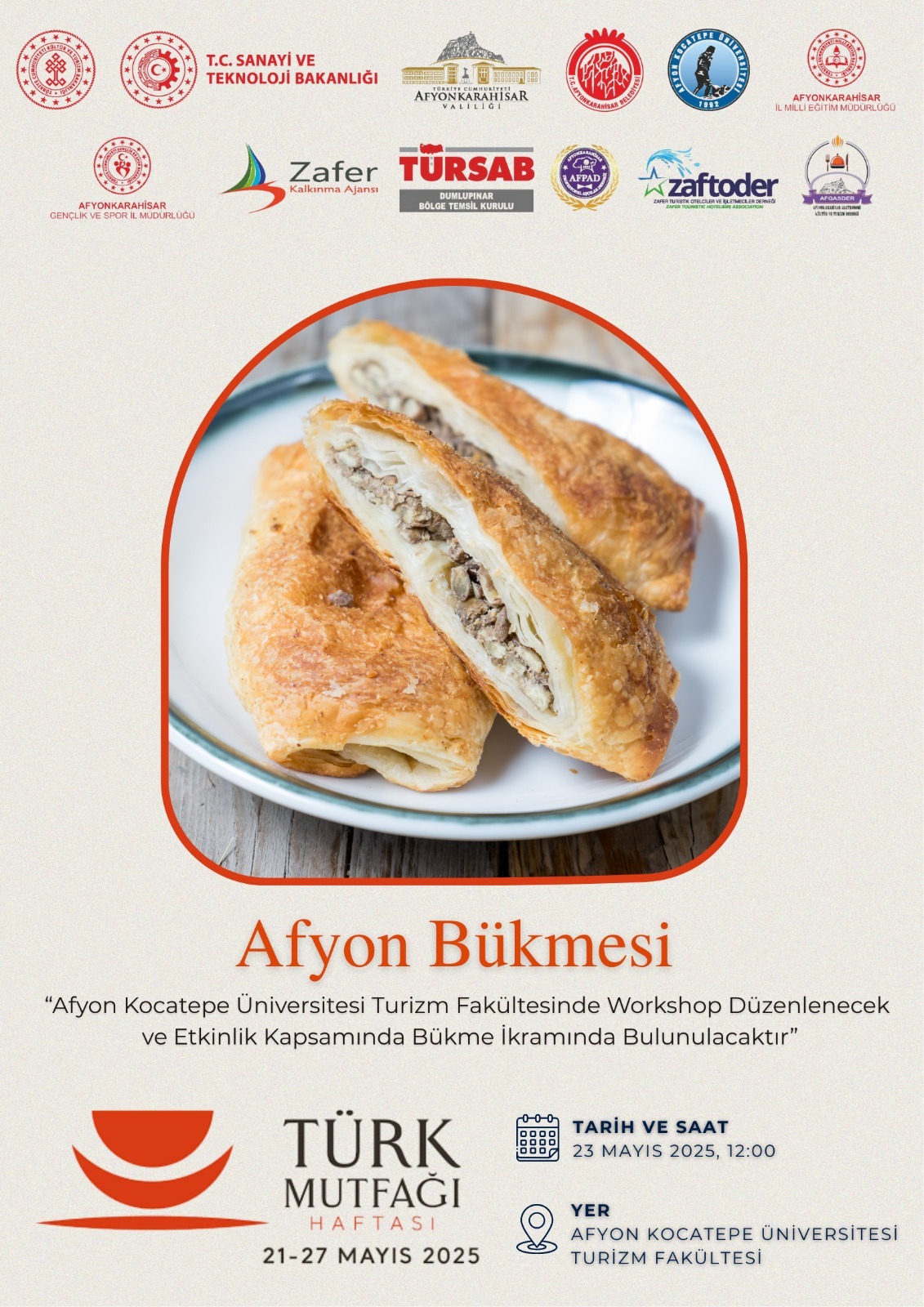 📍 22 Mayıs Perşembe – Sakala Çarpan Çorbası ve Patatesli Ev Ekmeği yapımı ve ikramı (AKÜ Turizm Fakültesi Önü, Saat: 12.00)