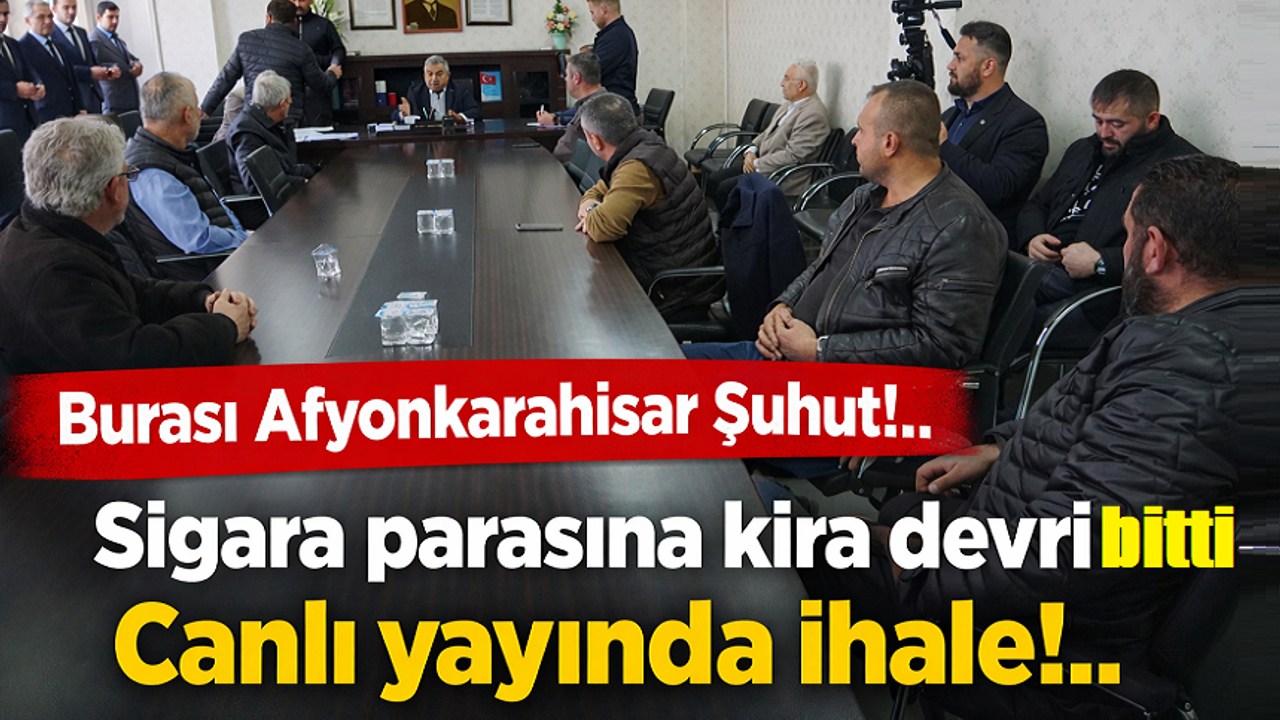 Meta Açıklama (Description): Şuhut Belediye Başkanı Muhittin Özaşkın, canlı yayınlanan ihalede açıkladı: Sigara parasına kiralanan dükkanlar güncellendi, belediye geliri aylık 4.5 Milyon TL'ye çıktı.