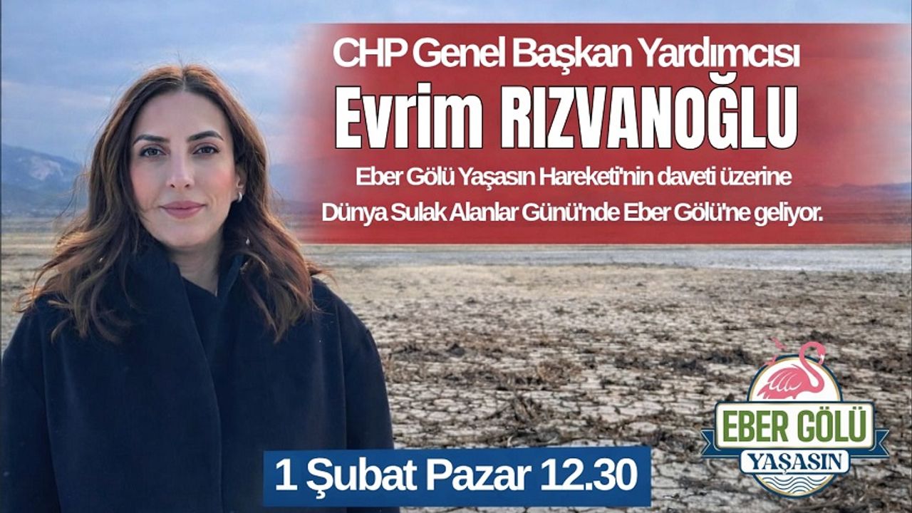 Eber Gölü’nde yaşanan kuraklık ve kirlilik felaketine dikkat çekmek amacıyla yürütülen çalışmalara bir destek de CHP’den geliyor. CHP Genel Başkan Yardımcısı Evrim Rızvanoğlu, "Eber Gölü Yaşasın Hareketi"nin daveti üzerine 1 Şubat Pazar günü bölgeye gelerek incelemelerde bulunacak.