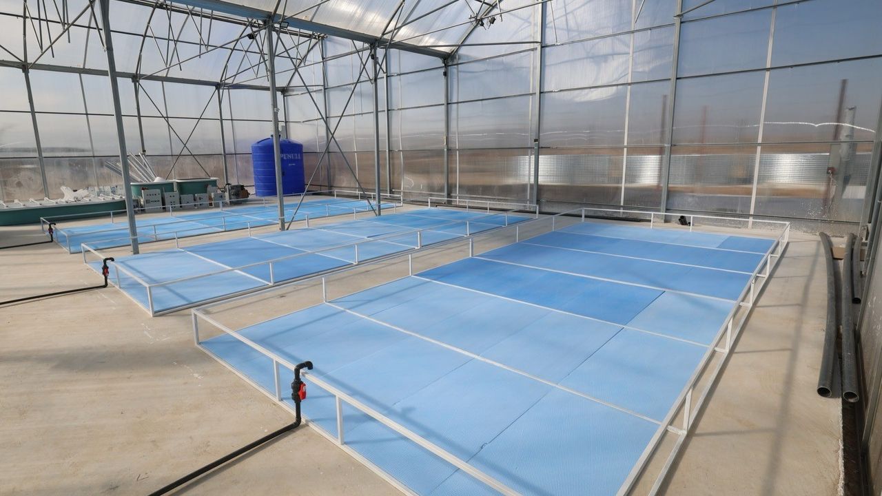 Teknopark bünyesinde 520 metrekare kapalı alanda kurulu üç serada proje kapsamında yer alan ürünlerin üretimi için teknik ve fiziki altyapı çalışmaları tamamlanarak canlıların havuzlara alınmadan önce biyolojik uyum çalışmalarına başlandı.