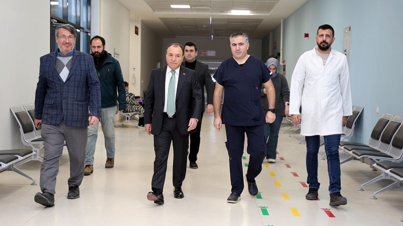 Ziyarette Rektör Karakaş’a; Hastane Başhekimi Prof. Dr. Musa Korkmaz, Başhekim Yardımcıları Dr. Öğr. Üyesi Ebubekir Yazıcı, Dr. Öğr. Üyesi Fatma Görücü Özbek ve Şube Müdürü İsmail Erol eşlik etti.