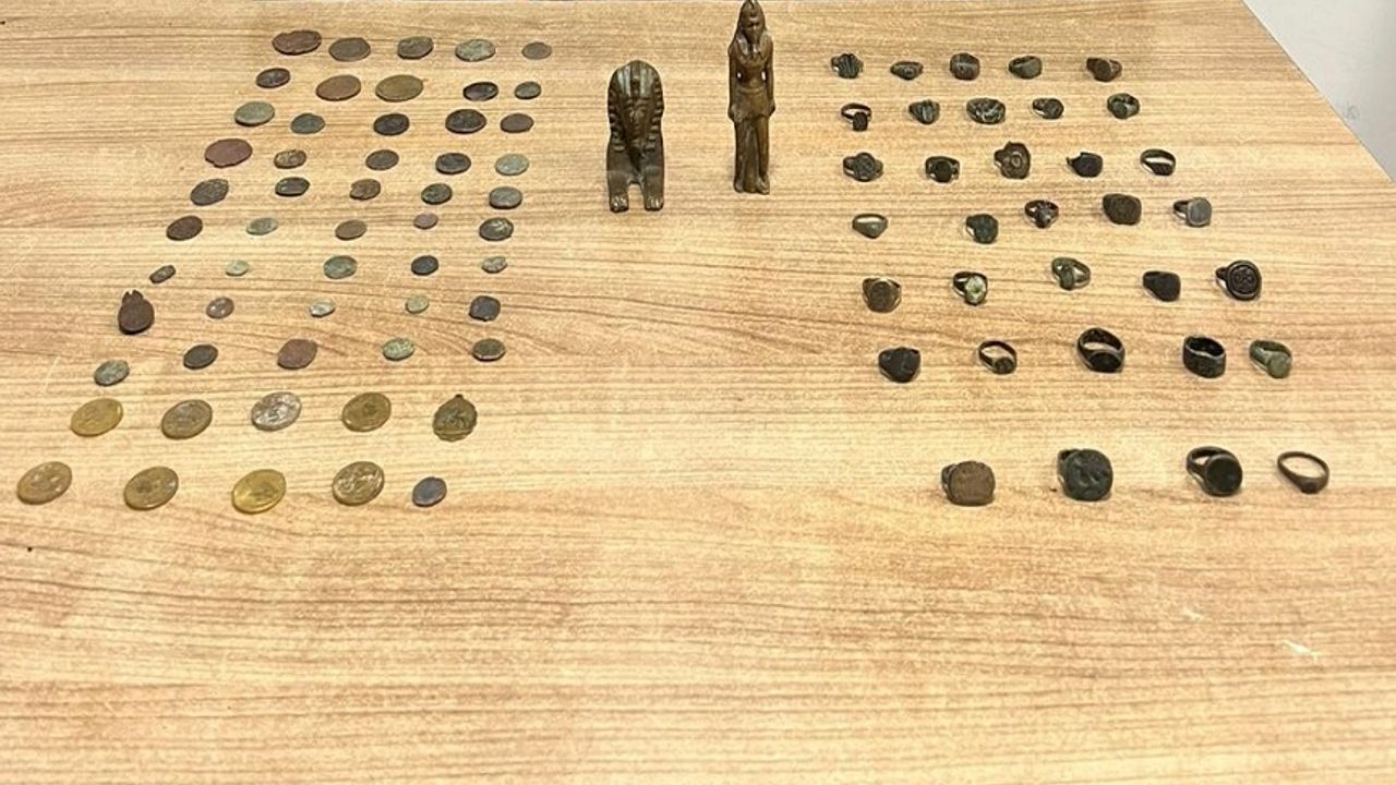 Afyonkarahisar'ın Bolvadin ilçesinde polis tarafından yapılan operasyonda aralarında sikke, yüzük ve objelerin bulunduğu çok sayıda tarihi eser ele geçirildi.