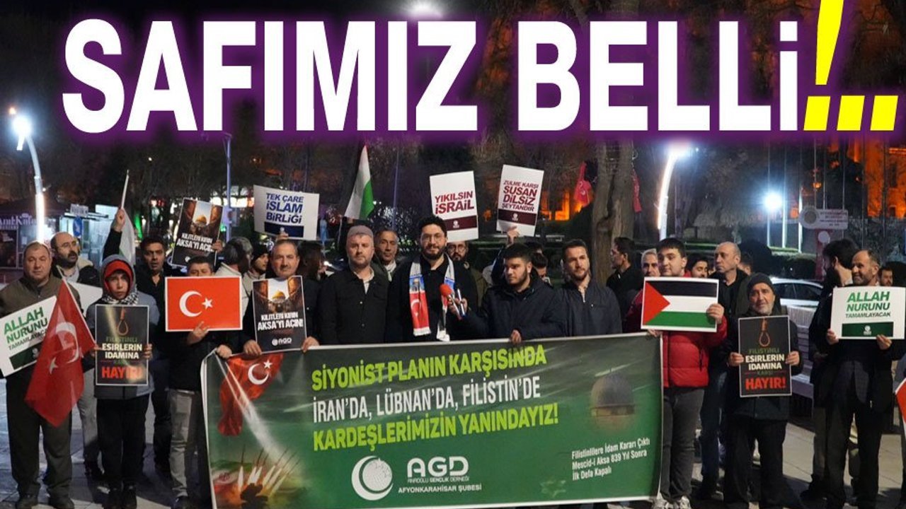Anadolu Gençlik Derneği (AGD) Afyonkarahisar Şubesi, İslam coğrafyasında yaşanan zulümlere dur demek ve mazlumların sesini duyurmak için Zafer Meydanı'nda geniş katılımlı bir basın açıklaması düzenledi. Filistin, İran, Lübnan ve Yemen'e yönelik saldırılara sert tepki gösteren Şube Başkanı Mevlüt Yeşil, "Bugün burada safımızı ilan etmeye geldik" mesajı verdi.